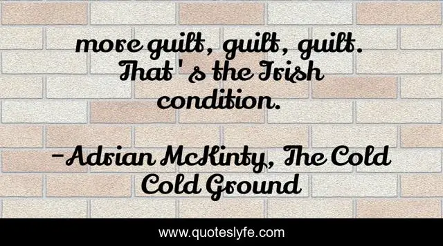 This page presents the quote "more guilt, guilt, guilt. That's the Irish condition.". Author of this quote is Adrian McKinty, The Cold Cold Ground. This quote is about irish, guilt, ireland,.
