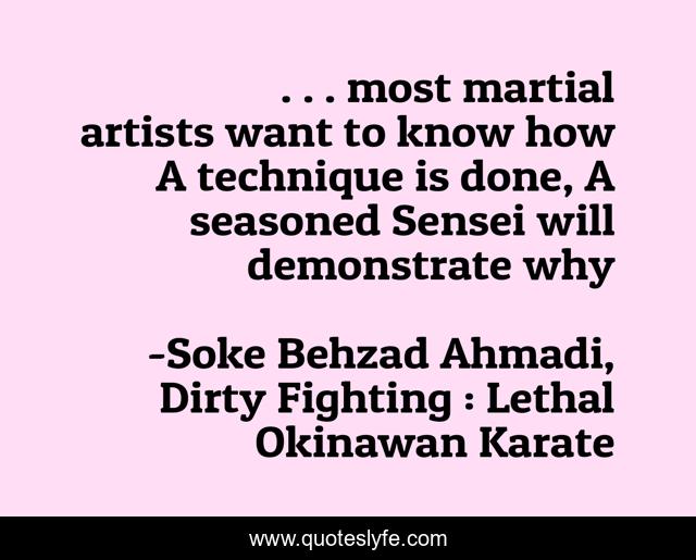 "Soke Behzad Ahmadi, Dirty Fighting : Lethal Okinawan Karate Quotes." Quoteslyfe.com, 2025. Mon. 08 Dec. 2025. <https://www.quoteslyfe.com/quote/most-martial-artists-want-to-know-how-121211>.