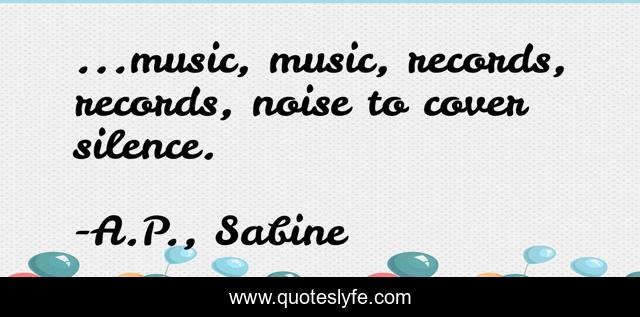 This page presents the quote "...music, music, records, records, noise to cover silence.". Author of this quote is A.P., Sabine. This quote is about records, music, silence,.