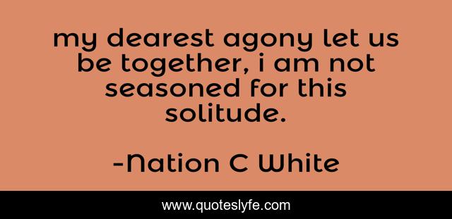 This page presents the quote "my dearest agony let us be together, i am not seasoned for this solitude.". Author of this quote is Nation C White. This quote is about agony, solitude, pain,.