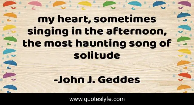 This page presents the quote "my heart, sometimes singing in the afternoon, the most haunting song of solitude". Author of this quote is John J. Geddes. This quote is about yearning, loneliness, solitude,.
