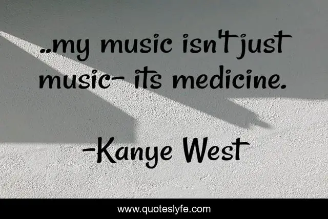 This page presents the quote "..my music isn't just music- its medicine.". Author of this quote is Kanye West. This quote is about medicine, music-is-medicine, music, kanye-west,.