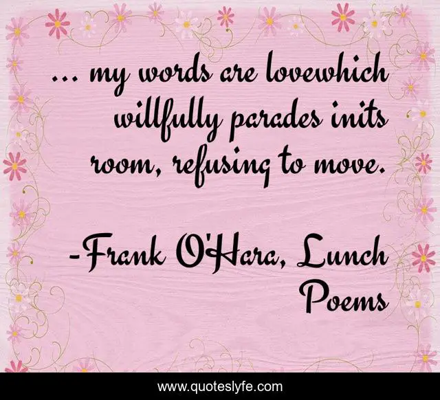 "Frank O'Hara, Lunch Poems Quotes." Quoteslyfe.com, 2025. Sat. 06 Dec. 2025. <https://www.quoteslyfe.com/quote/my-words-are-lovewhich-willfully-parades-inits-158254>.