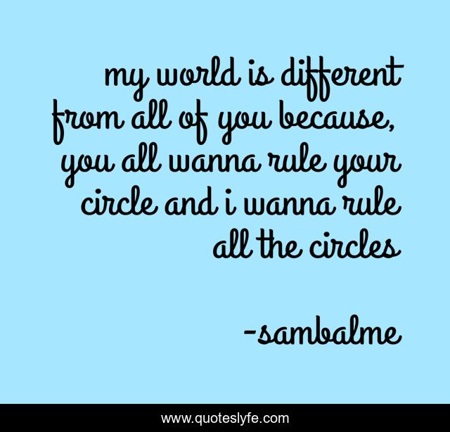 This page presents the quote "my world is different from all of you because, you all wanna rule your circle and i wanna rule all the circles". Author of this quote is sambalme. .