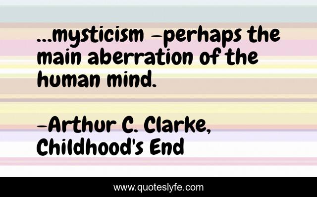 This page presents the quote "…mysticism –perhaps the main aberration of the human mind.". Author of this quote is Arthur C. Clarke, Childhood's End. This quote is about mysticism, human-mind, aberration,.