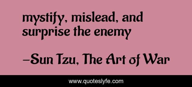This page presents the quote "mystify, mislead, and surprise the enemy". Author of this quote is Sun Tzu, The Art of War. This quote is about war, business, strategy,.