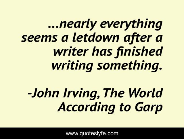 This page presents the quote "...nearly everything seems a letdown after a writer has finished writing something.". Author of this quote is John Irving, The World According to Garp. .