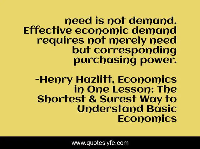 "Henry Hazlitt, Economics in One Lesson: The Shortest & Surest Way to Understand Basic Economics Quotes." Quoteslyfe.com, 2025. Sun. 07 Dec. 2025. <https://www.quoteslyfe.com/quote/need-is-not-demand-Effective-economic-demand-209841>.