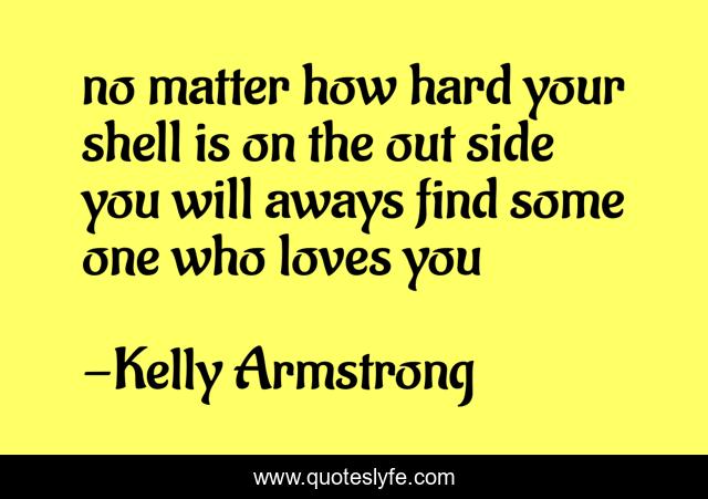 This page presents the quote "no matter how hard your shell is on the out side you will aways find some one who loves you". Author of this quote is Kelly Armstrong. .
