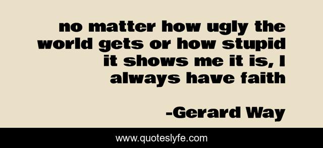 This page presents the quote "no matter how ugly the world gets or how stupid it shows me it is, I always have faith". Author of this quote is Gerard Way. This quote is about enthusiasm, inspirational,.