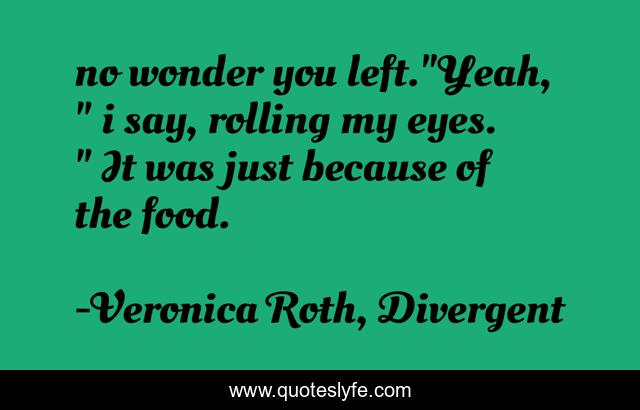 This page presents the quote "no wonder you left."Yeah, " i say, rolling my eyes. " It was just because of the food.". Author of this quote is Veronica Roth, Divergent. This quote is about food, abnegation, christina, tris, divergent,.