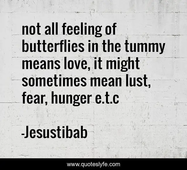 This page presents the quote "not all feeling of butterflies in the tummy means love, it might sometimes mean lust, fear, hunger e.t.c". Author of this quote is Jesustibab. This quote is about love, hunger, lust, butterflies, fear, affection,.