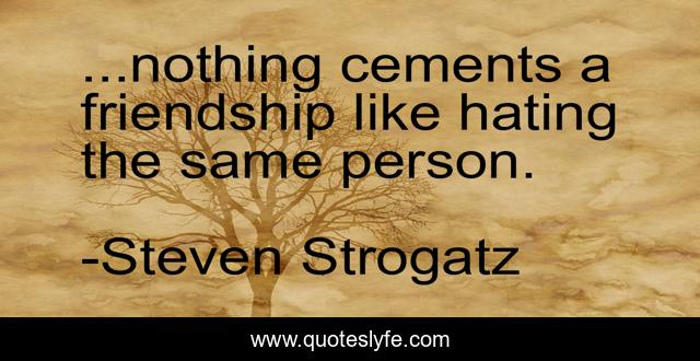 This page presents the quote "...nothing cements a friendship like hating the same person.". Author of this quote is Steven Strogatz. This quote is about friendship, enemies,.