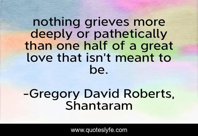 This page presents the quote "nothing grieves more deeply or pathetically than one half of a great love that isn’t meant to be.". Author of this quote is Gregory David Roberts, Shantaram. .