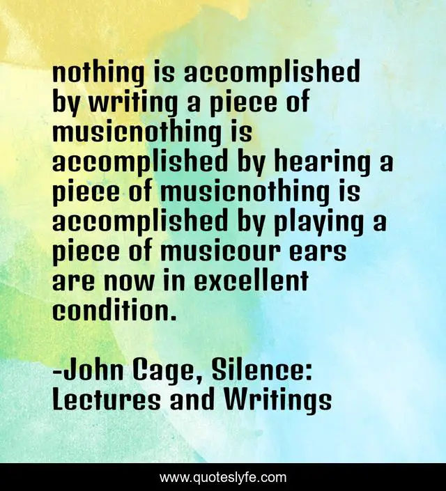 "John Cage, Silence: Lectures and Writings Quotes." Quoteslyfe.com, 2025. Mon. 08 Dec. 2025. <https://www.quoteslyfe.com/quote/nothing-is-accomplished-by-writing-a-piece-79089>.