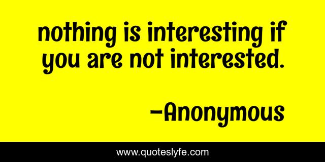 This page presents the quote "nothing is interesting if you are not interested.". Author of this quote is Anonymous. .