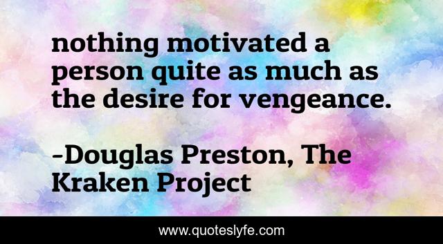 This page presents the quote "nothing motivated a person quite as much as the desire for vengeance.". Author of this quote is Douglas Preston, The Kraken Project. .