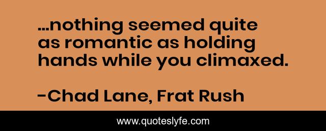 This page presents the quote "...nothing seemed quite as romantic as holding hands while you climaxed.". Author of this quote is Chad Lane, Frat Rush. This quote is about glbt-romance, romantic,.
