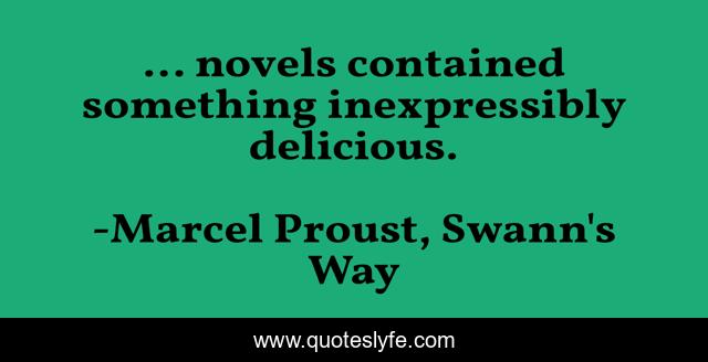 This page presents the quote "... novels contained something inexpressibly delicious.". Author of this quote is Marcel Proust, Swann's Way. .