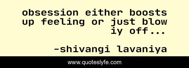 This page presents the quote "obsession either boosts up feeling or just blow iy off...". Author of this quote is shivangi lavaniya. This quote is about obsession, feelings,.
