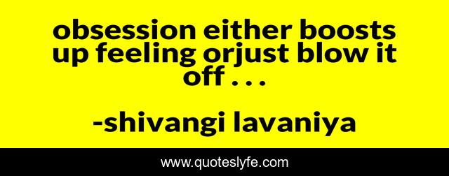This page presents the quote "obsession either boosts up feeling orjust blow it off . . .". Author of this quote is shivangi lavaniya. This quote is about feeling, obsession,.