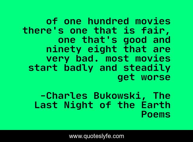 "Charles Bukowski, The Last Night of the Earth Poems Quotes." Quoteslyfe.com, 2025. Sat. 06 Dec. 2025. <https://www.quoteslyfe.com/quote/of-one-hundred-movies-there-s-one-255766>.