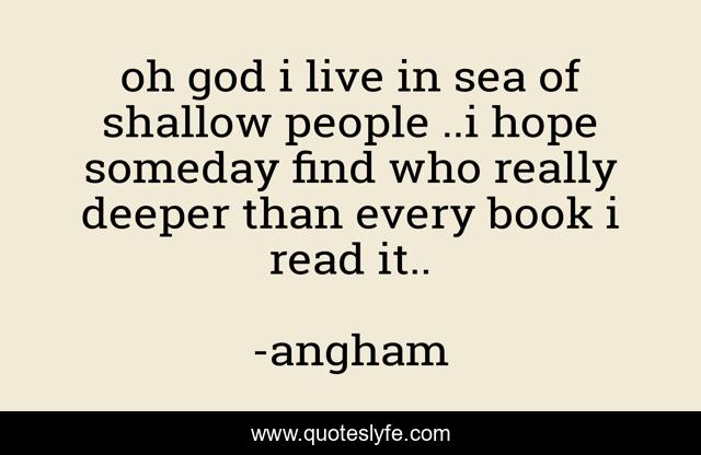 This page presents the quote "oh god i live in sea of shallow people ..i hope someday find who really deeper than every book i read it..". Author of this quote is angham. This quote is about love, people, god, books, sea, affection, care,.