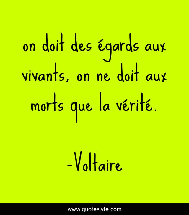 This page presents the quote "on doit des égards aux vivants, on ne doit aux morts que la vérité.". Author of this quote is Voltaire. This quote is about life, death, truth,.
