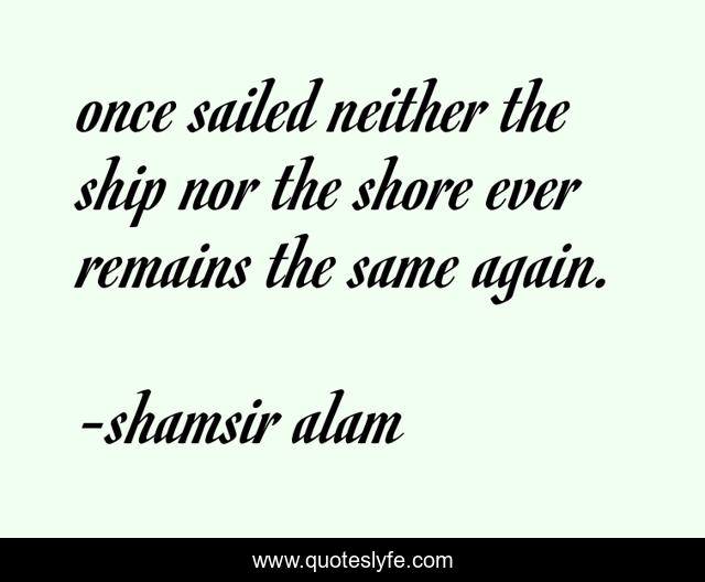 This page presents the quote "once sailed neither the ship nor the shore ever remains the same again.". Author of this quote is shamsir alam. This quote is about change, enthusiasm, life, inspirational, life-lessons,.
