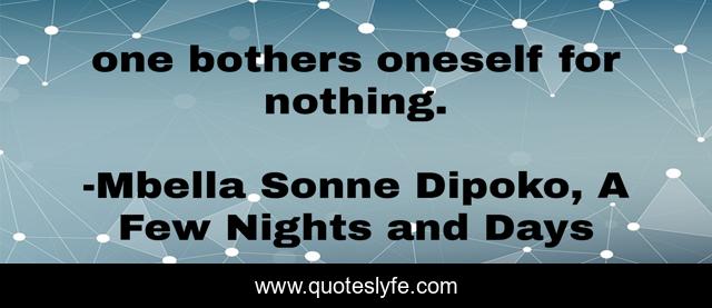 This page presents the quote "one bothers oneself for nothing.". Author of this quote is Mbella Sonne Dipoko, A Few Nights and Days. .