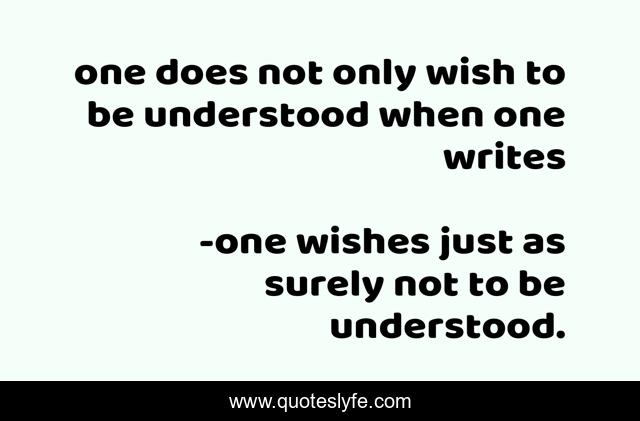 This page presents the quote "one does not only wish to be understood when one writes". Author of this quote is one wishes just as surely not to be understood.. .