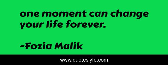 This page presents the quote "one moment can change your life forever.". Author of this quote is Fozia Malik. .