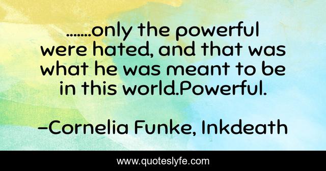 This page presents the quote ".......only the powerful were hated, and that was what he was meant to be in this world.Powerful.". Author of this quote is Cornelia Funke, Inkdeath. This quote is about hatred, power,.