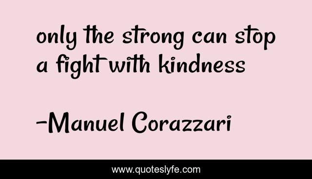 This page presents the quote "only the strong can stop a fight with kindness". Author of this quote is Manuel Corazzari. This quote is about kindness, forgiveness, goodness,.