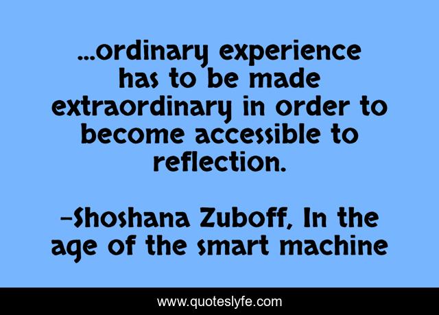 This page presents the quote "...ordinary experience has to be made extraordinary in order to become accessible to reflection.". Author of this quote is Shoshana Zuboff, In the age of the smart machine. .
