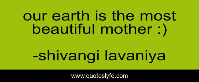 This page presents the quote "our earth is the most beautiful mother :)". Author of this quote is shivangi lavaniya. This quote is about beautiful, earth, mother,.