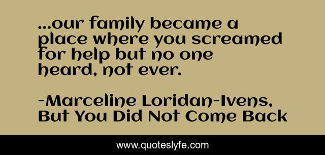 This page presents the quote "...our family became a place where you screamed for help but no one heard, not ever.". Author of this quote is Marceline Loridan-Ivens, But You Did Not Come Back. This quote is about family-relationships, desperation, tragedy, emotional-pain,.