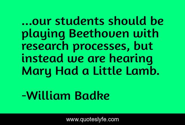 This page presents the quote "...our students should be playing Beethoven with research processes, but instead we are hearing Mary Had a Little Lamb.". Author of this quote is William Badke. This quote is about information-literacy, information, students, research,.