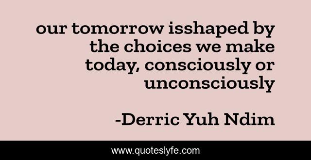 This page presents the quote "our tomorrow isshaped by the choices we make today, consciously or unconsciously". Author of this quote is Derric Yuh Ndim. This quote is about personal-development, performance, choice, self-help,.