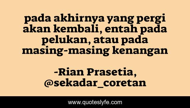 "Rian Prasetia, @sekadar_coretan Quotes." Quoteslyfe.com, 2025. Sat. 06 Dec. 2025. <https://www.quoteslyfe.com/quote/pada-akhirnya-yang-pergi-akan-kembali-entah-22465>.