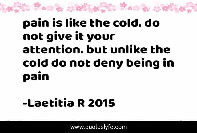 "Laetitia R 2015 Quotes." Quoteslyfe.com, 2025. Sat. 06 Dec. 2025. <https://www.quoteslyfe.com/quote/pain-is-like-the-cold-do-not-143761>.