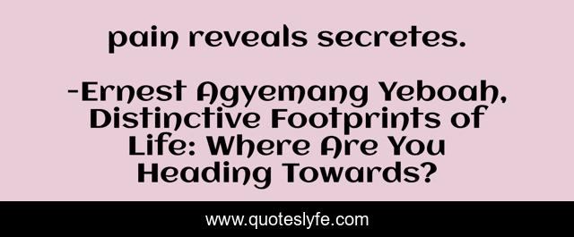 "Ernest Agyemang Yeboah, Distinctive Footprints of Life: Where Are You Heading Towards? Quotes." Quoteslyfe.com, 2025. Sun. 07 Dec. 2025. <https://www.quoteslyfe.com/quote/pain-reveals-secretes-98993>.