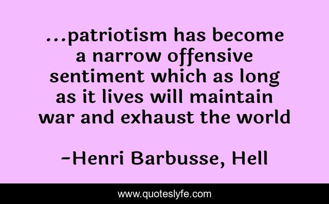 "Henri Barbusse, Hell Quotes." Quoteslyfe.com, 2025. Fri. 05 Dec. 2025. <https://www.quoteslyfe.com/quote/patriotism-has-become-a-narrow-offensive-sentiment-240696>.