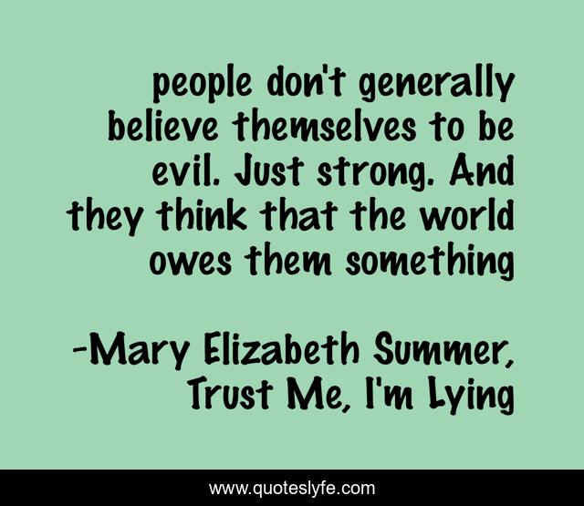 "Mary Elizabeth Summer, Trust Me, I'm Lying Quotes." Quoteslyfe.com, 2025. Fri. 05 Dec. 2025. <https://www.quoteslyfe.com/quote/people-don-t-generally-believe-themselves-to-210805>.