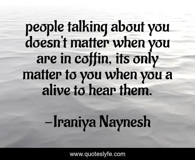 This page presents the quote "people talking about you doesn't matter when you are in coffin, its only matter to you when you a alive to hear them.". Author of this quote is Iraniya Naynesh. This quote is about life-and-living, death-note,.