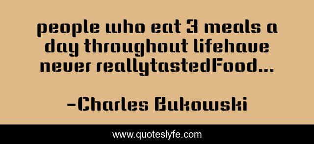 This page presents the quote "people who eat 3 meals a day throughout lifehave never reallytastedFood...". Author of this quote is Charles Bukowski. This quote is about food, poverty,.