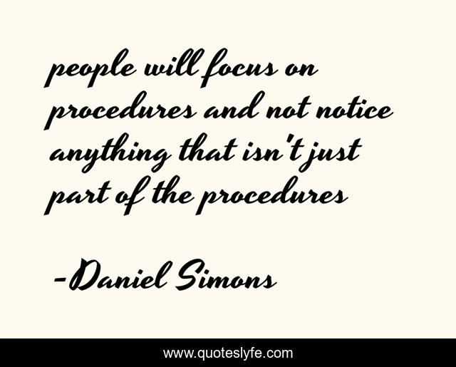 "Daniel Simons Quotes." Quoteslyfe.com, 2025. Sun. 07 Dec. 2025. <https://www.quoteslyfe.com/quote/people-will-focus-on-procedures-and-not-103271>.
