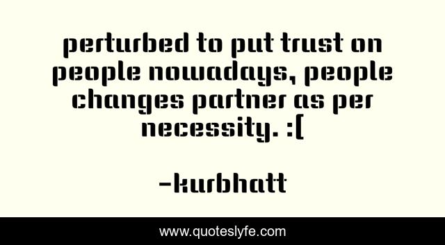 This page presents the quote "perturbed to put trust on people nowadays, people changes partner as per necessity. :(". Author of this quote is kurbhatt. This quote is about life, people, people-nature, life-lessons, selfishness, truth-of-life,.
