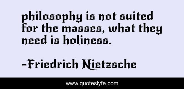 This page presents the quote "philosophy is not suited for the masses, what they need is holiness.". Author of this quote is Friedrich Nietzsche. This quote is about philosophical, humour,.