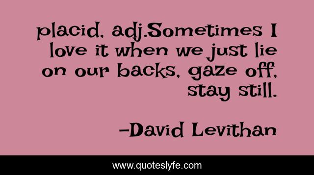 This page presents the quote "placid, adj.Sometimes I love it when we just lie on our backs, gaze off, stay still.". Author of this quote is David Levithan. .